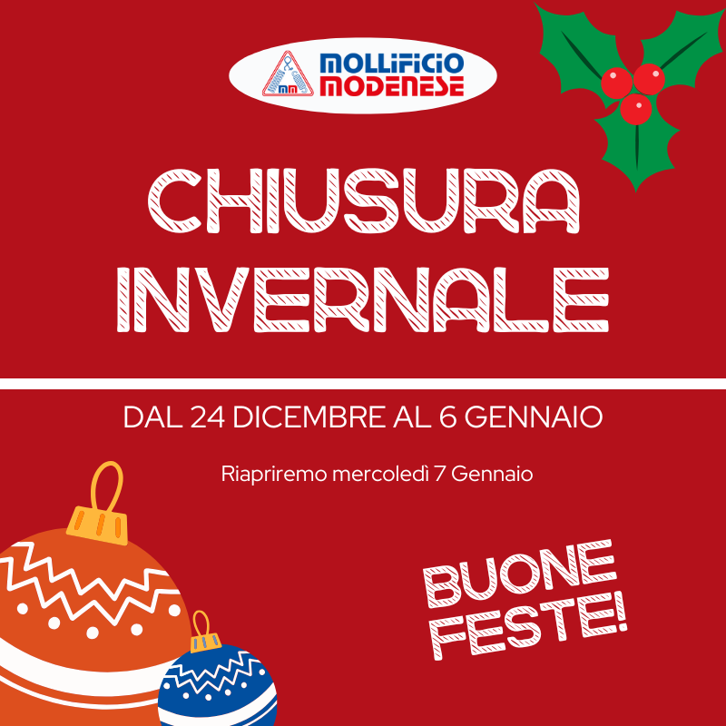 Saremo chiusi dal 24/12/2025 al 06/01/2026. Riapertura il 07/01/2026.